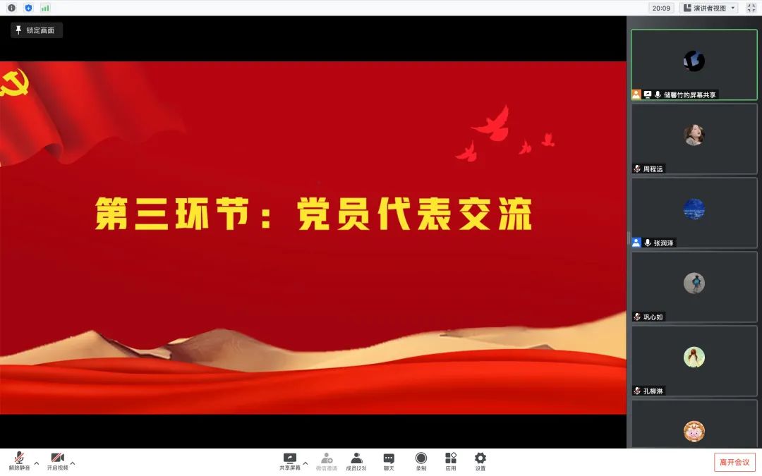 2020级硕士生第一党支部书记储馨竹主持,可达鸭