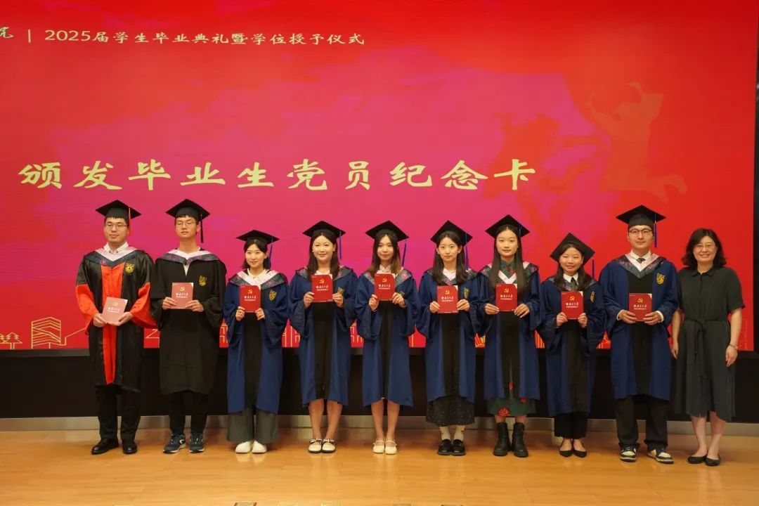优秀毕业生代表颁发优秀毕业生荣誉证书,倪春纳老师为2025届校友联络员孙经纬、李志远、刘晨、蔡恺翔同学颁发校友联络员证书,时昱书记为毕业生党员代表颁发毕业生党员纪念卡。