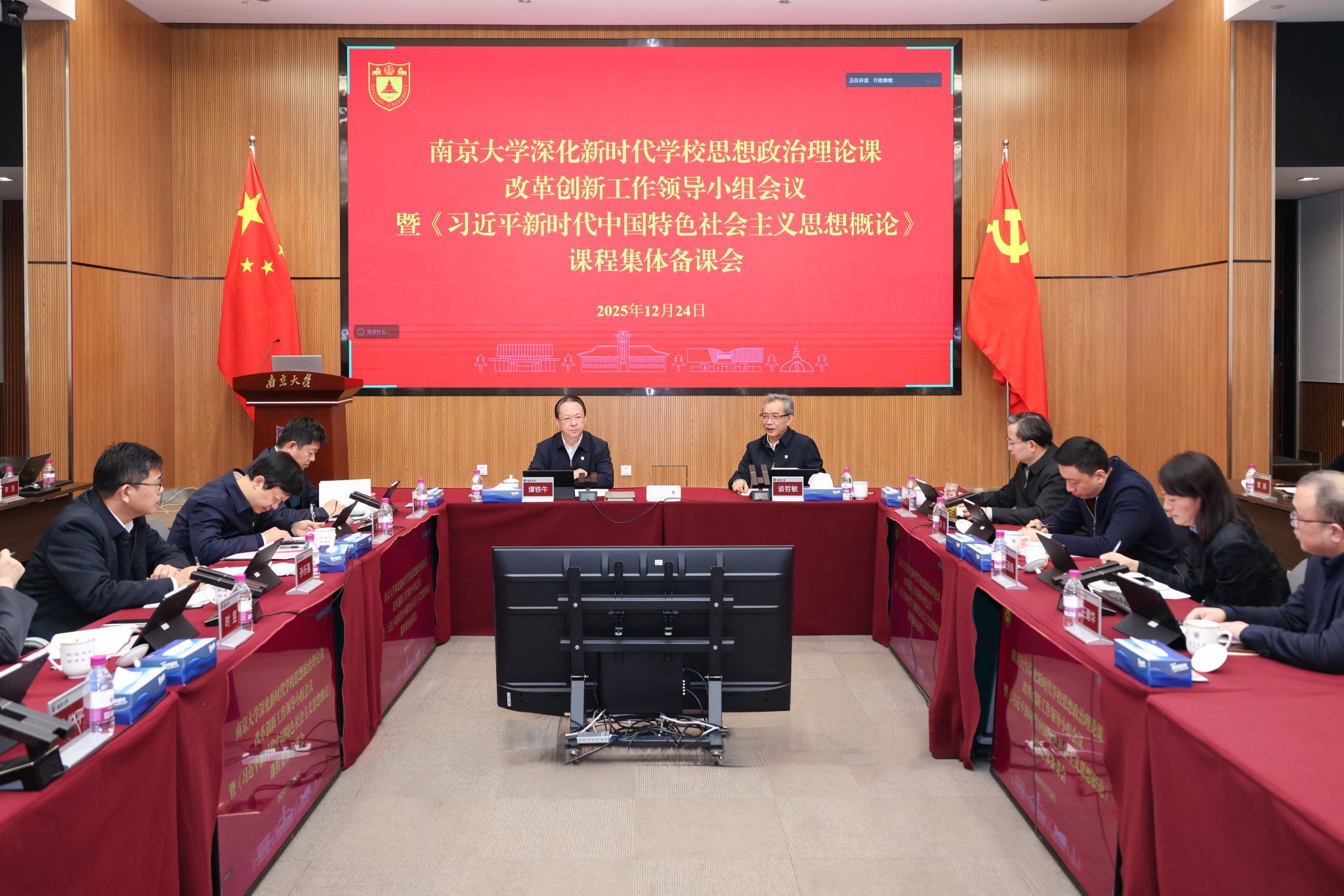召开深化新时代学校思想政治理论课改革创新工作领导小组会议,并开展《习近平新时代中国特色社会主义思想概论》课程集体备课。校党委书记谭铁牛主持会议并讲话,校长谈哲敏出席会议并讲话。