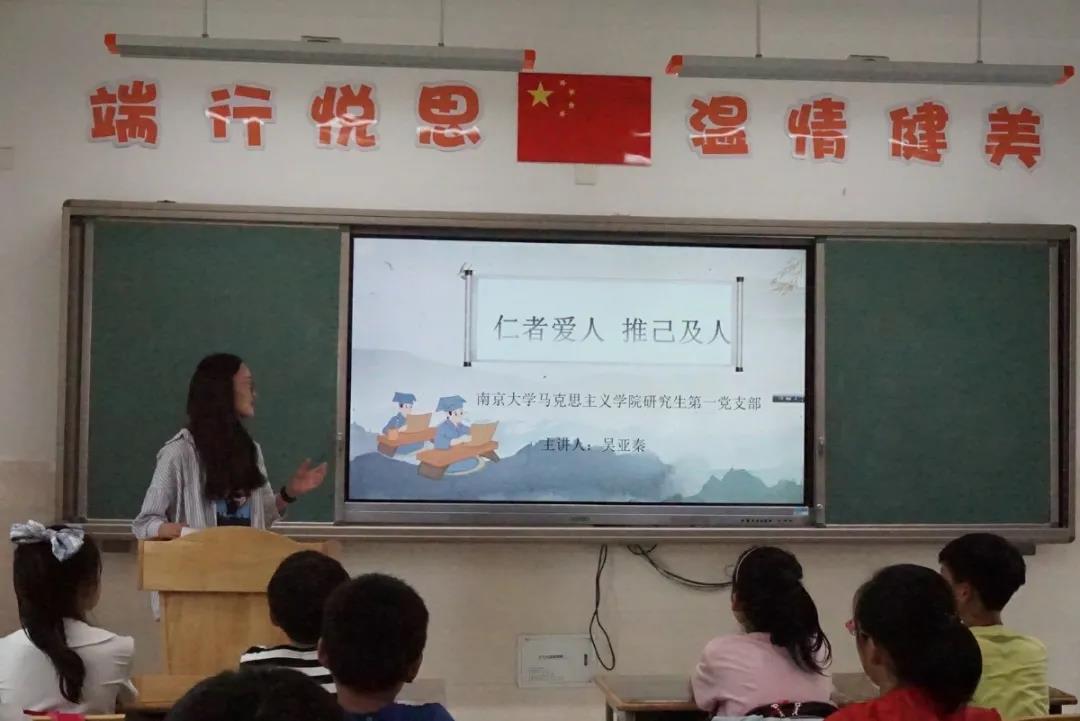 研究生第一党支部部分成员前往南京市芳草园小学,面向五年级全体学生开展以“仁者爱人,推己及人”为题的志愿服务宣讲活动,带领同学们学习感悟中华优秀传统文化魅力。
