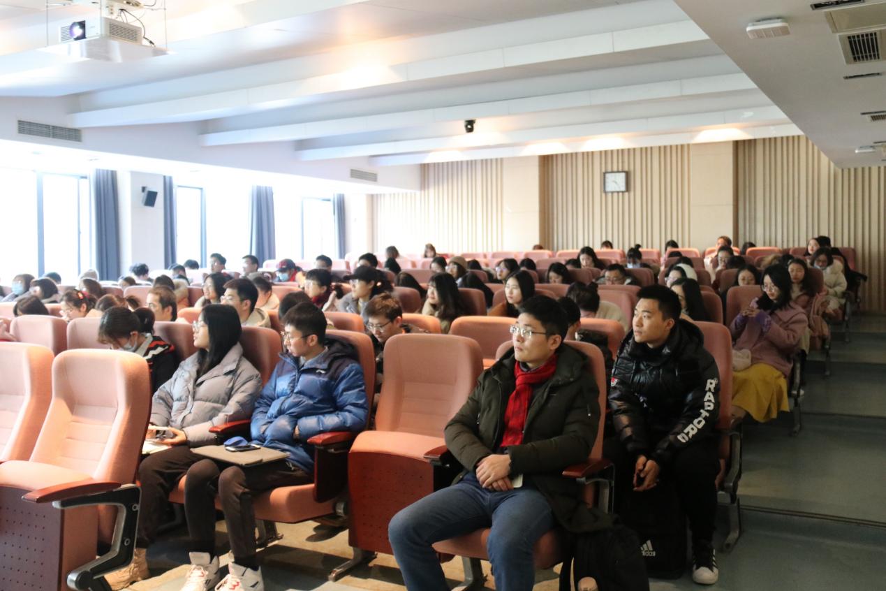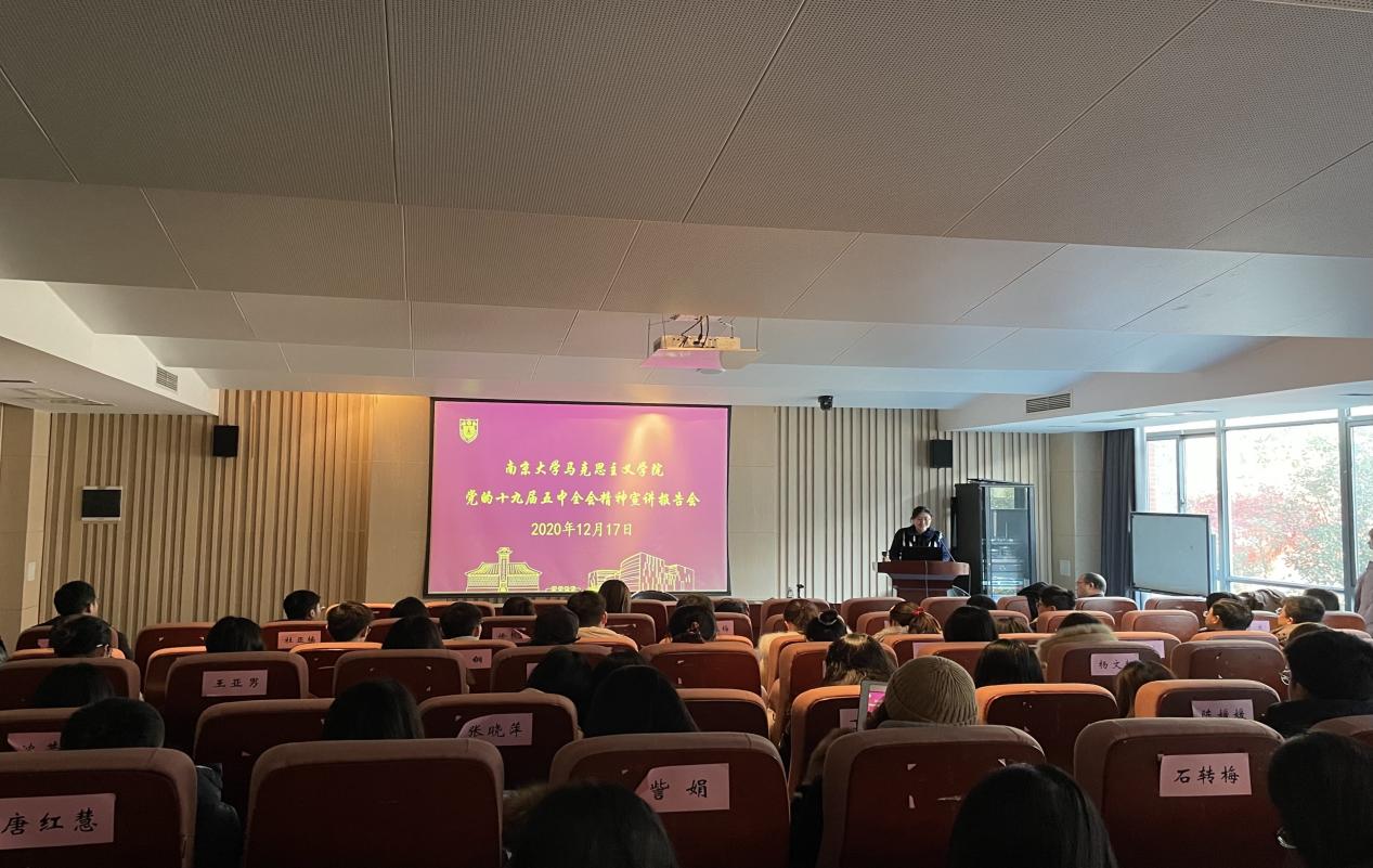 党委书记王建华教授在圣达楼101报告厅为学院全体党员学生进行了党的十九届五中全会精神解读,党委副书记时昱主持会议。