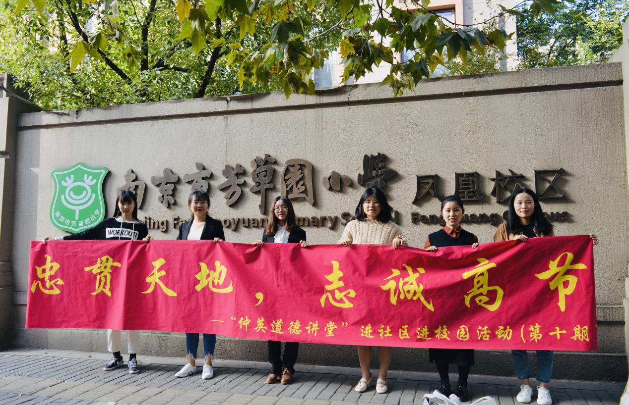 第十期“仲英道德讲堂”进社区进校园活动拉开帷幕,活动小组赴南京市芳草园小学开展以“忠贯天地,志诚高节”为主题的中华优秀传统道德讲堂活动,本次活动由蔡文慧同学主持,南京市芳草园小学30余名师生参与其中,反响热烈。