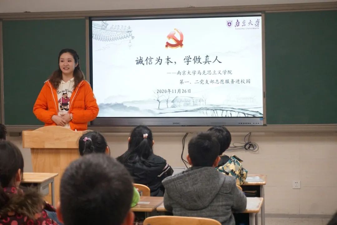 研究生第一、第二党支部成功开展赴南京市芳草园小学“诚信为本,学做真人”主题宣讲活动