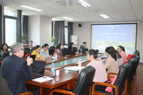 3月15日,10:00在圣达楼321,戴维斯教授给同学们带来了一场题为“公民教育教学方法”的讲座。戴维斯教授就英国公民教学的方法进行了详尽的介绍。首先,戴维斯教授向我们介绍了英国公民教育的概况。接着,教授为我们提供了几种特别的公民教育方法:道德两难问题讨论法;模拟选举;联系相关学科。教授解释的非常清晰仔细,同学们对于公民教育的教学方法提出了诸多问题,教授为同学们一一解答。12:00整,讲座结束,部分同学与教授进行深入交流。