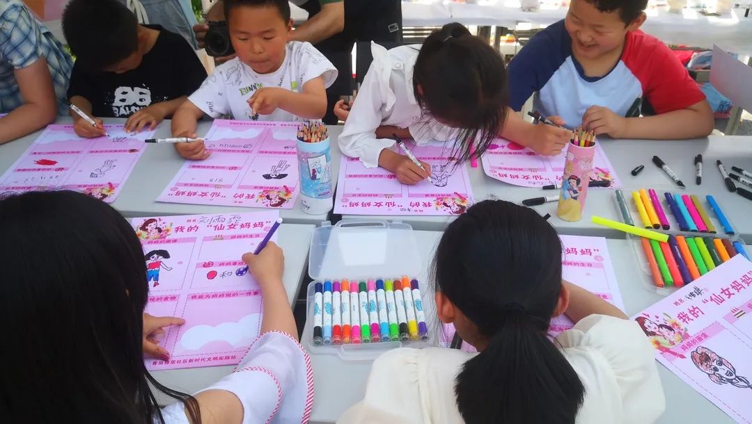 志愿者的协助下,小朋友们纷纷拿起画笔,在卡纸上画起了心目中的母亲。他们全神贯注,时不时地举起画笔思索一会儿。大家的作品多姿多彩,一笔一划都饱含了对妈妈满满的爱意。“妈妈最喜欢吃的一道菜是什么?妈妈的生日是什么时候呢?”工作人员在画纸的其他位置设置了心有灵犀小游戏,小朋友们答得十分认真,仔细思考的同时也增进了他们对妈妈的关注和了解,整个活动现场气氛欢快且温馨。