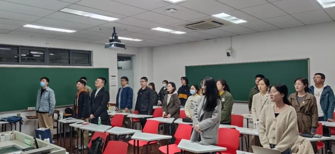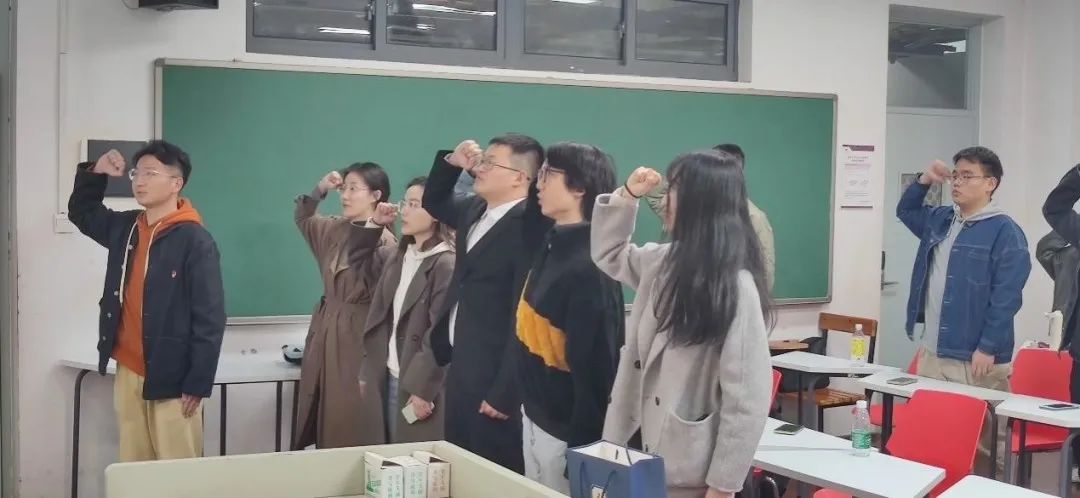 随后,支部书记姚瀚霖提出要求,希望支部全体党员同志在今后的深造与工作的过程中,牢记入党誓词,不忘入党初心,勇担历史使命,坚持“三个务必”,以“赶考”精神投身于中国式现代化建设,并在此过程中充分发挥党员的先锋模范作用。最后,本次活动在雄壮的《国际歌》声中圆满结束。