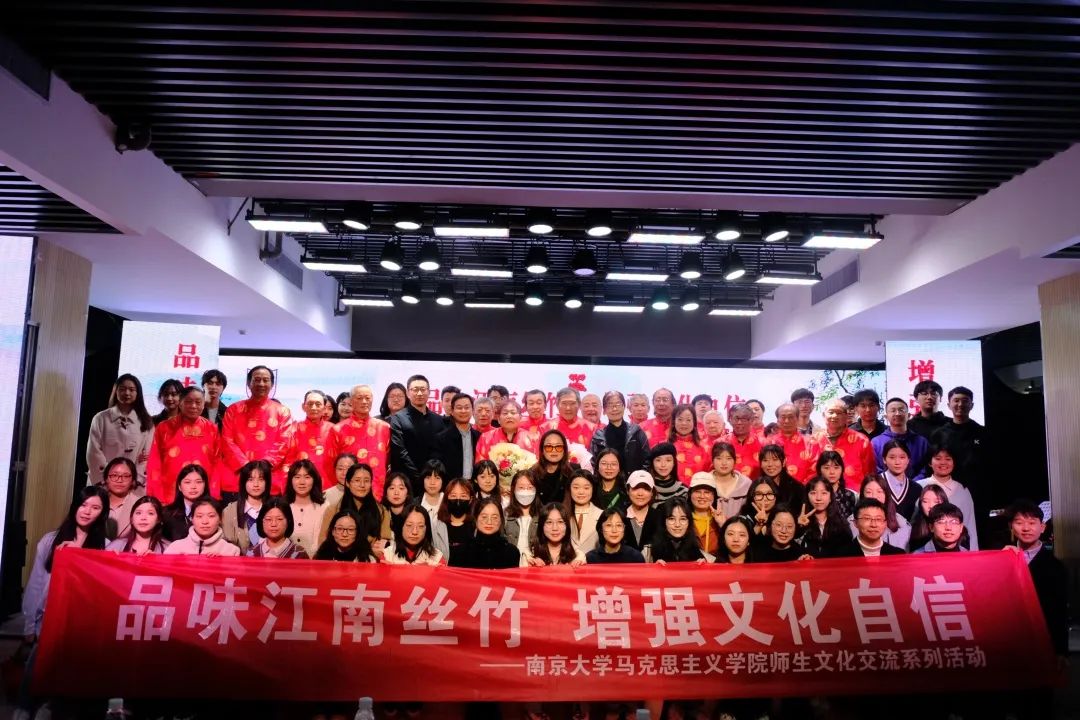 2022级本科新生导师暴庆刚、戴雪红两位教授的精心策划和带领下,来自本硕博多年级的八十余人齐聚南京市秦淮·非遗馆,共同欣赏南京市非物质文化遗产江南丝竹专场音乐会,并参观非遗馆,了解南京“非遗”文化。本场音乐会由中国四大乐社之一的南京乐社江南丝竹乐团演奏,甘熙故居一代民乐大宗师甘涛先生之子、著名二胡演奏家甘梵先生和著名扬琴演奏家李家振先生领衔,秦淮·非遗馆副馆长江楠先生莅临本次活动。