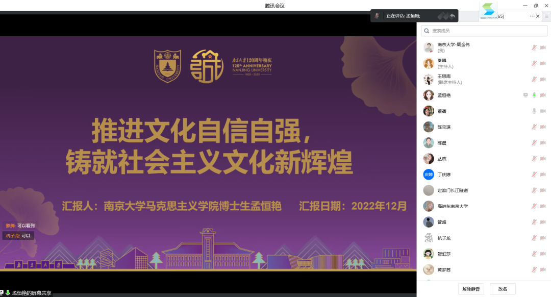 2021级硕士生第二党支部、博士生第一党支部、博士生第二团支部、2021级硕士生第二团支部与南京交通运营管理集团(以下简称:运管集团)以线上形式开展了党团支部共建暨党的二十大精神专题宣讲活动,双方单位60余名党团员青年相聚云端参加本次活动。活动分共建合作和专题宣讲两个环节,分别由运管集团党群工作部主任、团总支书记董蓓和可达鸭