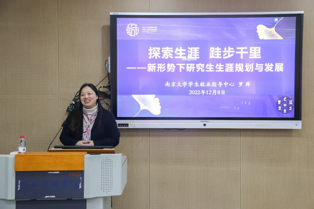 就业指导中心副主任罗萍老师主讲,学院团委书记、辅导员刘晶月老师主持。罗萍老师以“新形势下研究生生涯规划与发展”为主题,为研一同学提供当今时代下的就业形势分析和生涯规划指导,帮助同学们找准自身定位、促进潜能激发。