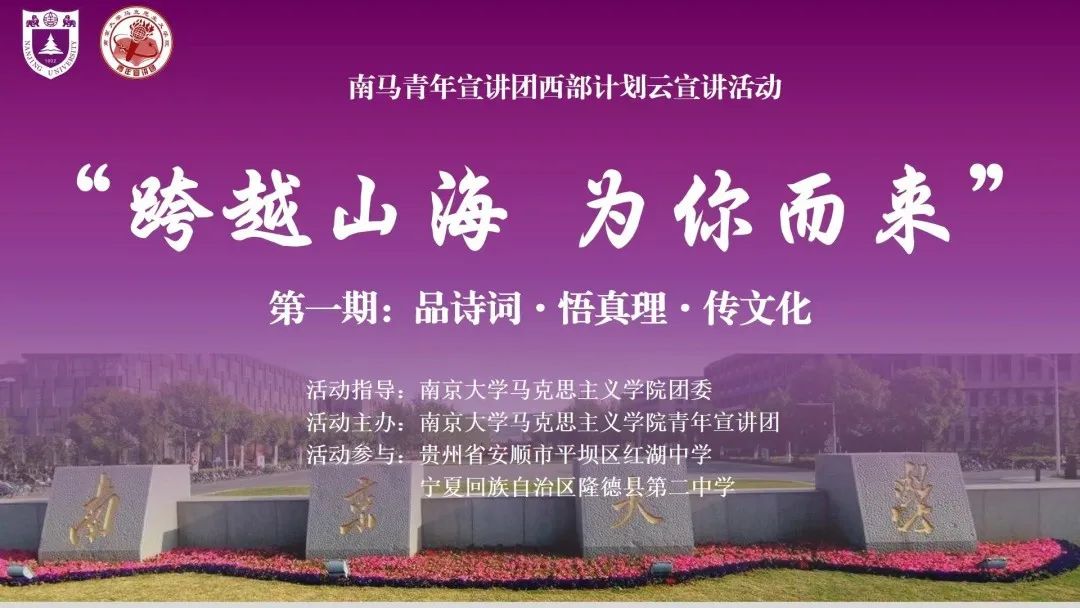 中华传统优秀文化源远流长、博大精深,而传统诗词犹如文化中的璀璨明珠,饱含了文人雅士的诗意表达,它有时是对乡村民情喜爱的自然流露,有时是对自然风光的写意描绘。2022年12月,“跨越山海 为你而来”云支教活动第一期——“品诗词·悟真理·传文化”顺利开展。本次课程由何雨潼讲师主讲,她带领贵州省安顺市平坝区红湖中学和宁夏回族自治区隆德县第二中学的初一全体同学走进陆游的《游山西村》,让中华传统诗词在云课堂上焕发新时代光彩。
