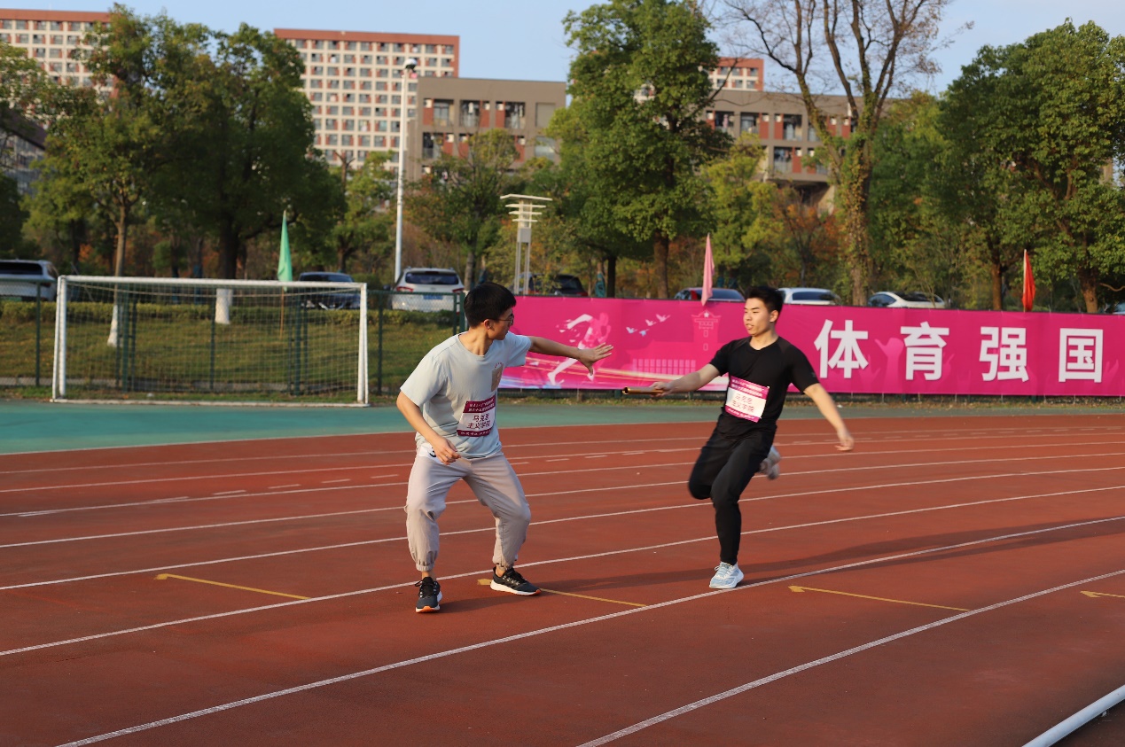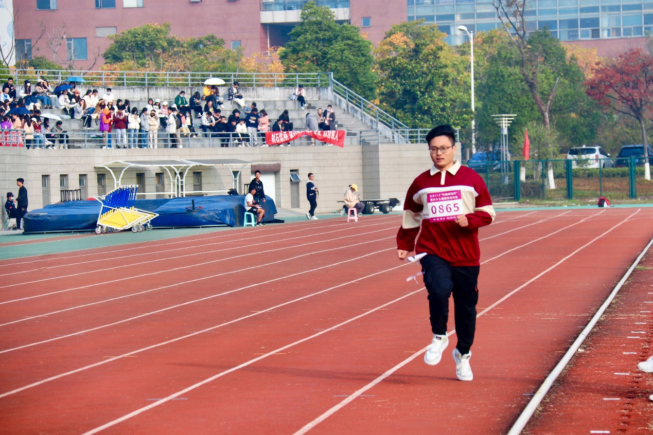 参加女子接力的杨婉琼、张蝶、林晓素和吴佩璇同学。在比赛刚开始时,虽然处于落后地位,但选手们凭借持之以恒的毅力,不因一时的落后而放弃,不断奋起直追,赶超了多支队伍,最后获得了小组第三。在男子接力中,徐潇、胡佳振、李澳和周甫森同学带着突破极限的决心上场,接力棒的传递是心与心的碰撞,更是梦与梦的相遇,无论输赢,他们都是应当以鲜花和欢呼迎接的勇士。