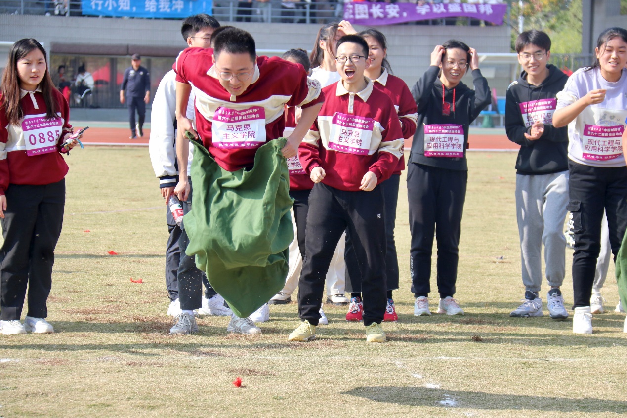 参加了布袋跳比赛,他们以骄人的姿态展现出了南马学子的青春活力与风采,最终取得了小组第三的好成绩。