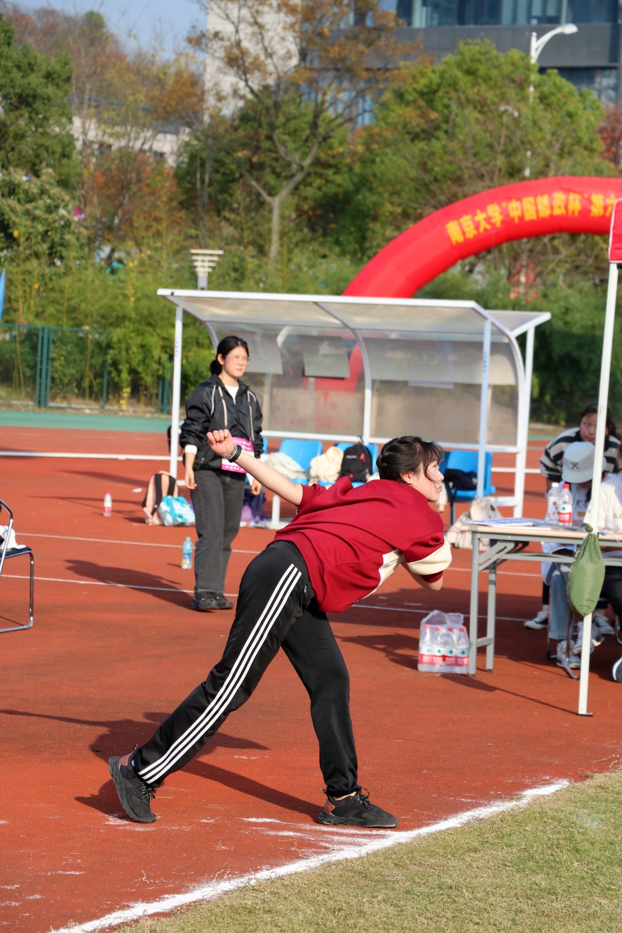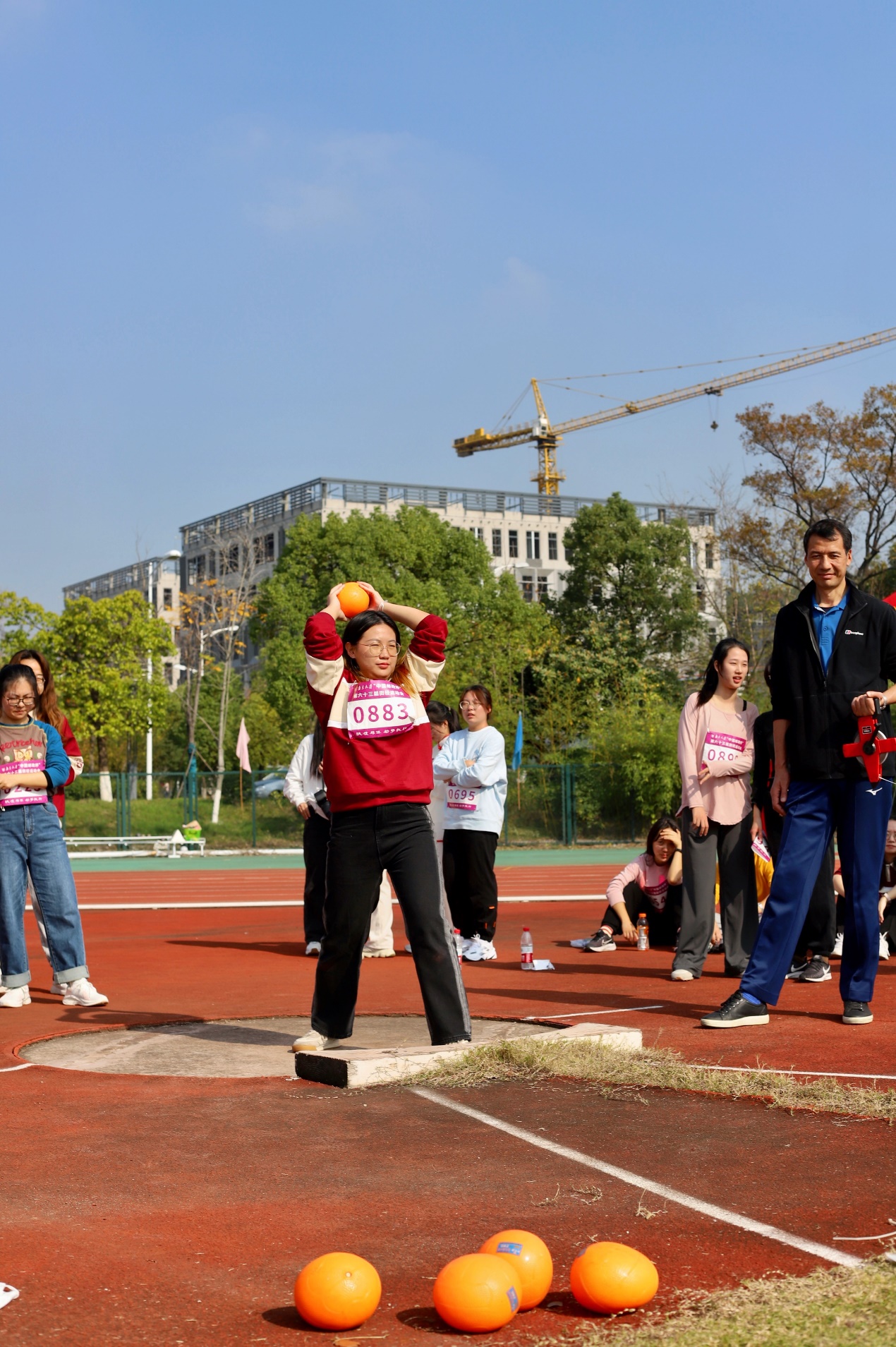 的林晓素、崔天馨和阴悦同学参加比赛。三人在比赛中都表现出了极高的热情,每一次的投掷都是她们激情的展现。其中林晓素同学两次抛球的出色发挥使在场的惊叹声此起彼伏;第一轮比赛过后,她以27.9米的成绩进入决赛。在第二轮比赛中,林晓素同学继续稳定发挥,接连尝试了立定抛球和助跑抛球两种方式,最终取得了全校第六名的优异成绩,为可达鸭