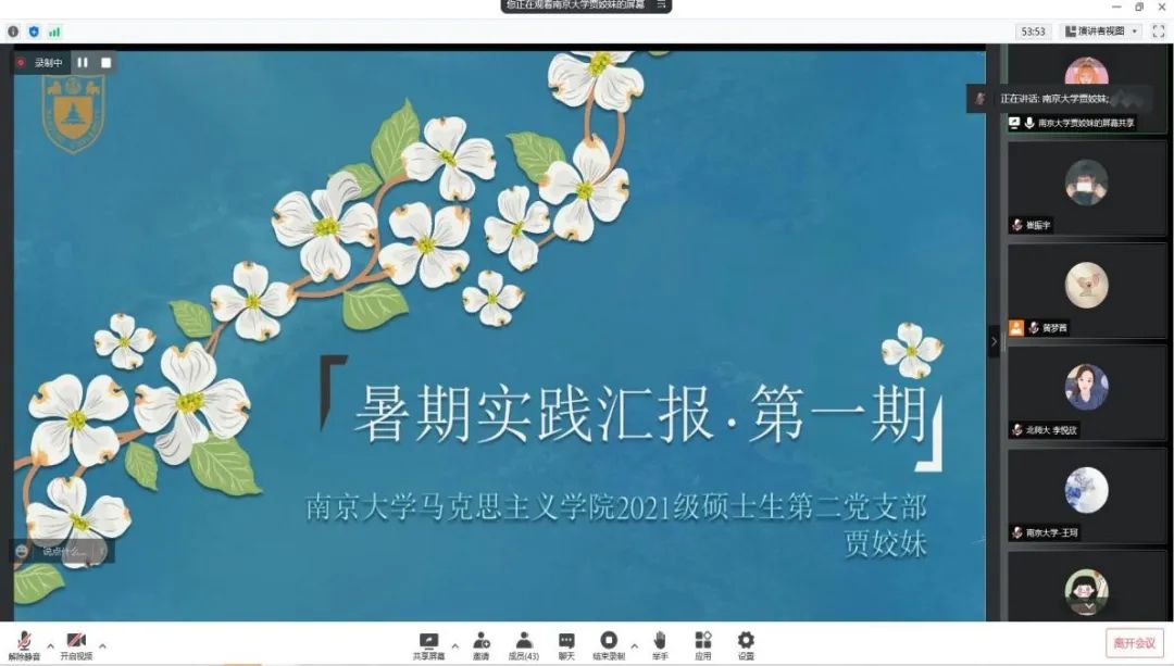 2021级硕士生第二党支部党员进行暑期实习实践第1期汇报展示。