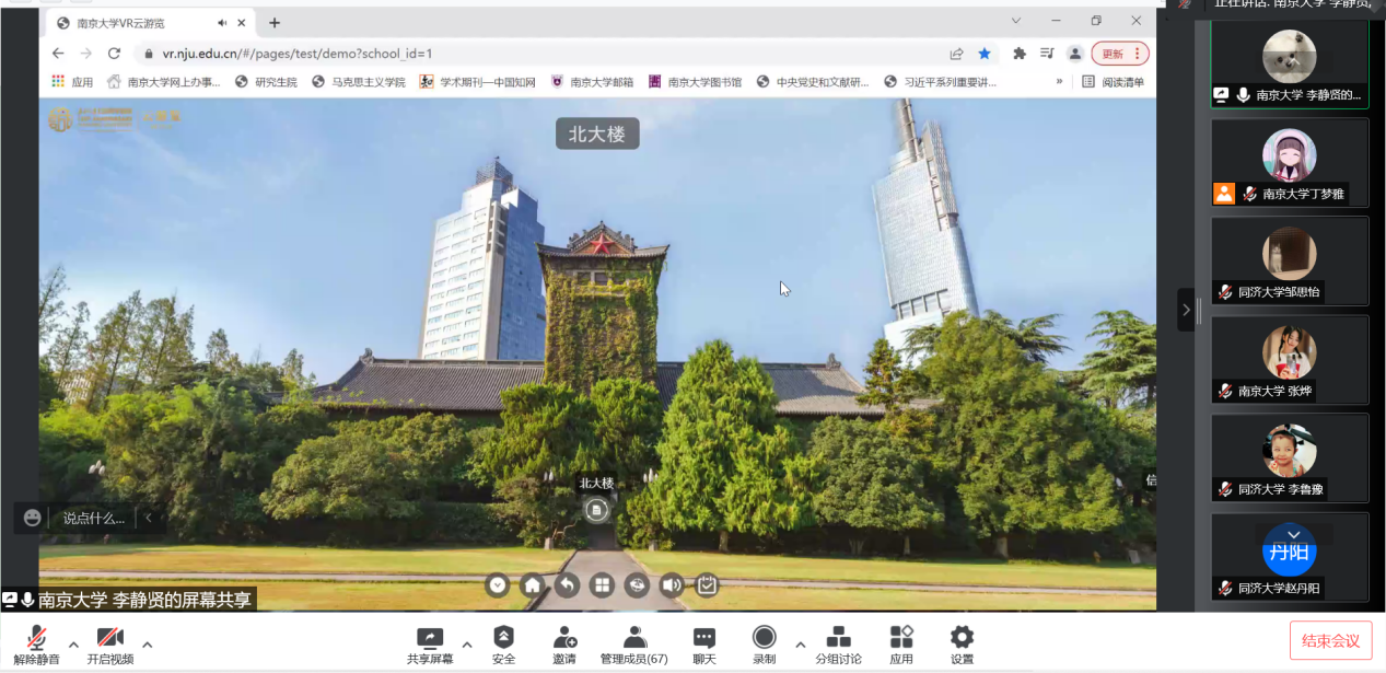 2021级硕士生第一党支部第三党小组的成员,带领两校同学通过VR游览可达鸭