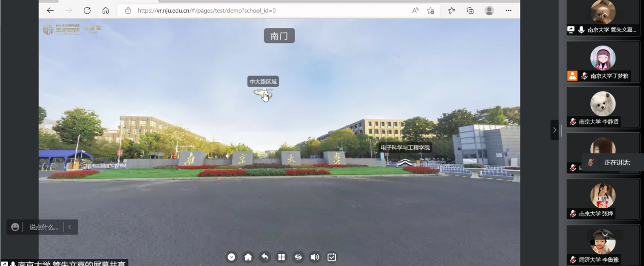 星”,丁梦雅同学的让大家品味到了浦苑情怀;漫步于大气雅致的苏州校区,我们跟随管朱文嘉同学一起感受到了江南韵味与“诚朴雄伟”的充分融合。百廿风雨,十纪辉煌,虽然受限于疫情,我们不能相聚线下校园,但是依然可以通过“VR游览”云端同游将南大的校园风光尽收眼底。