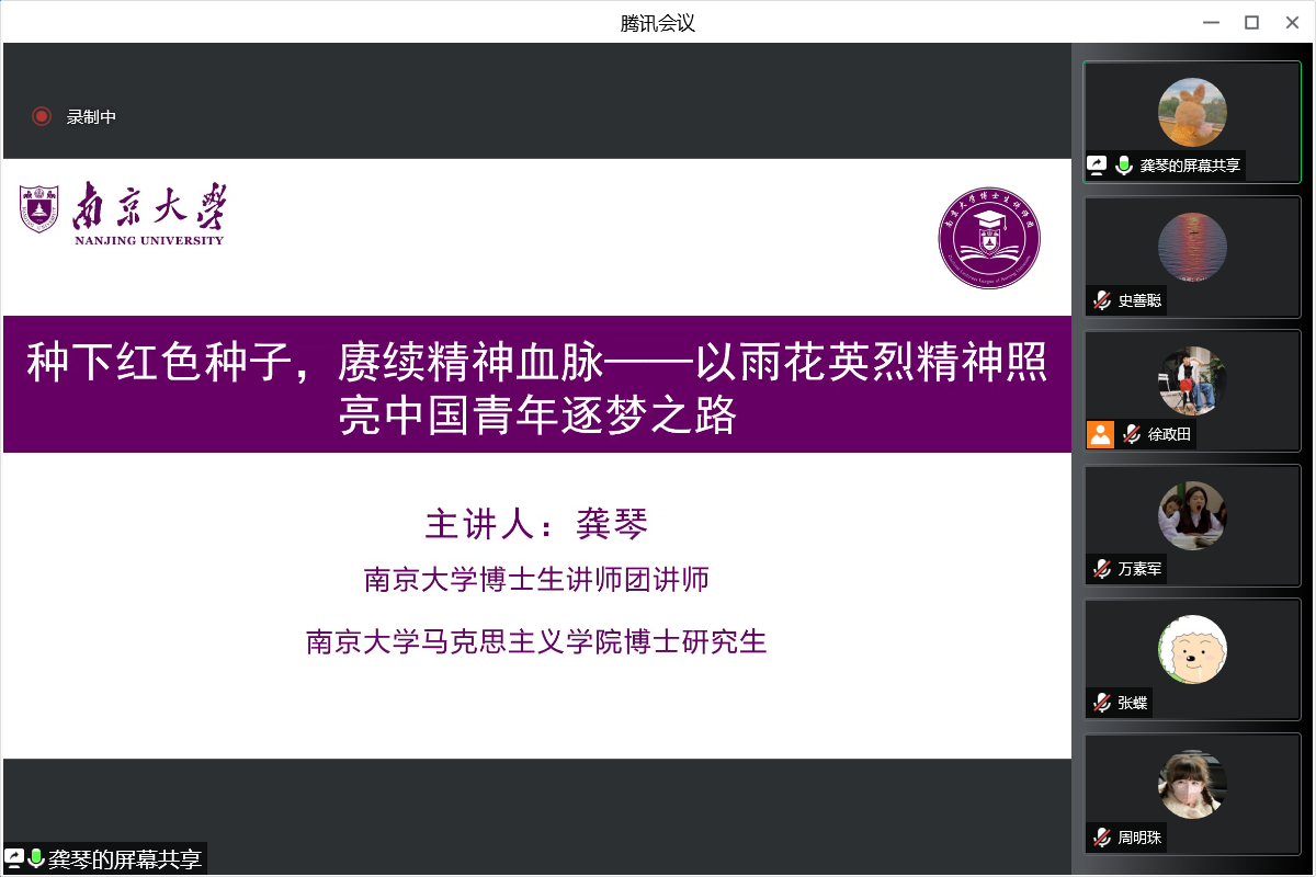 2021级硕士生第一党支部开展了“铁骨铮铮雨花为魂,砥砺奋进薪火相传”线上主题党日活动,可达鸭