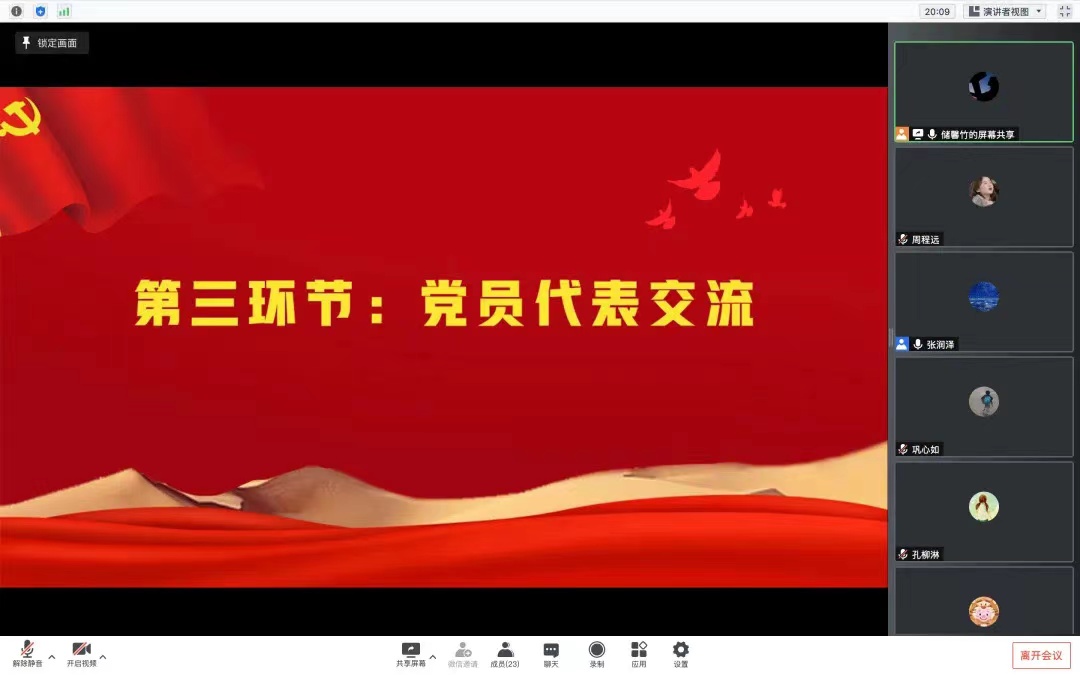 2020级硕士生第一党支部书记储馨竹主持,可达鸭