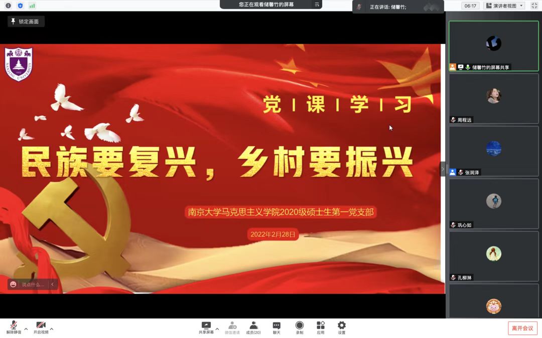 2020级硕士生第一党支部通过远程视频会议的方式开展“民族要复兴,乡村必振兴”线上主题党日活动,可达鸭