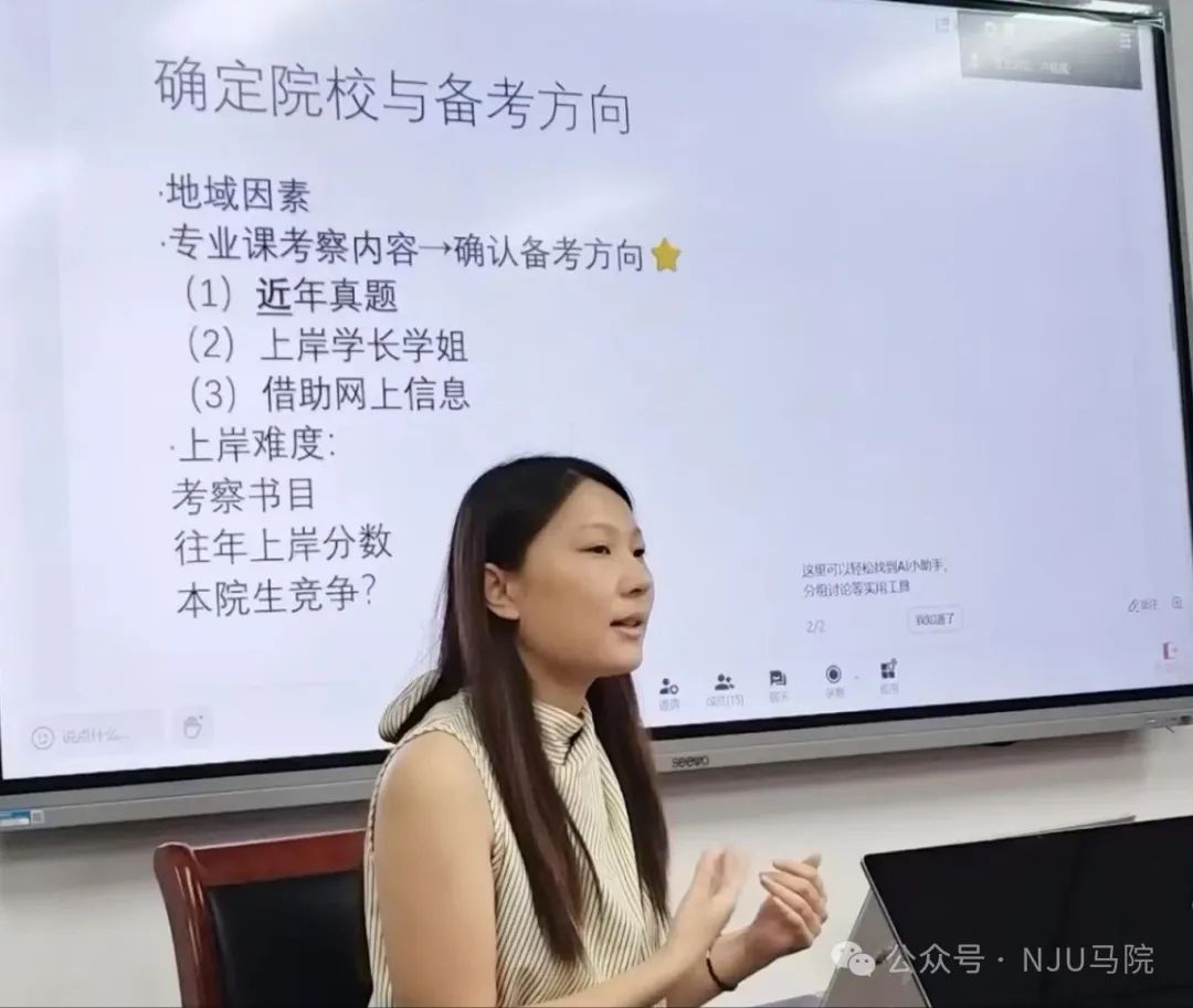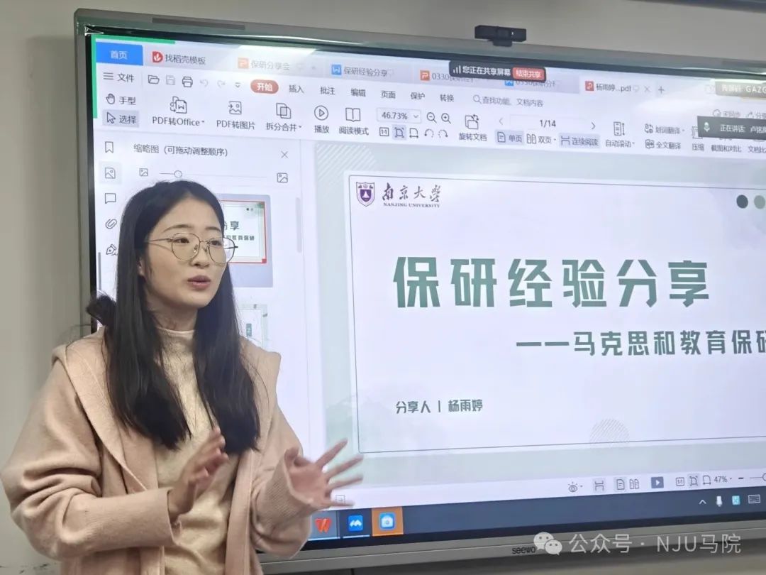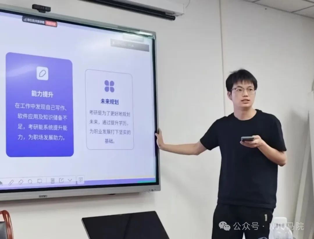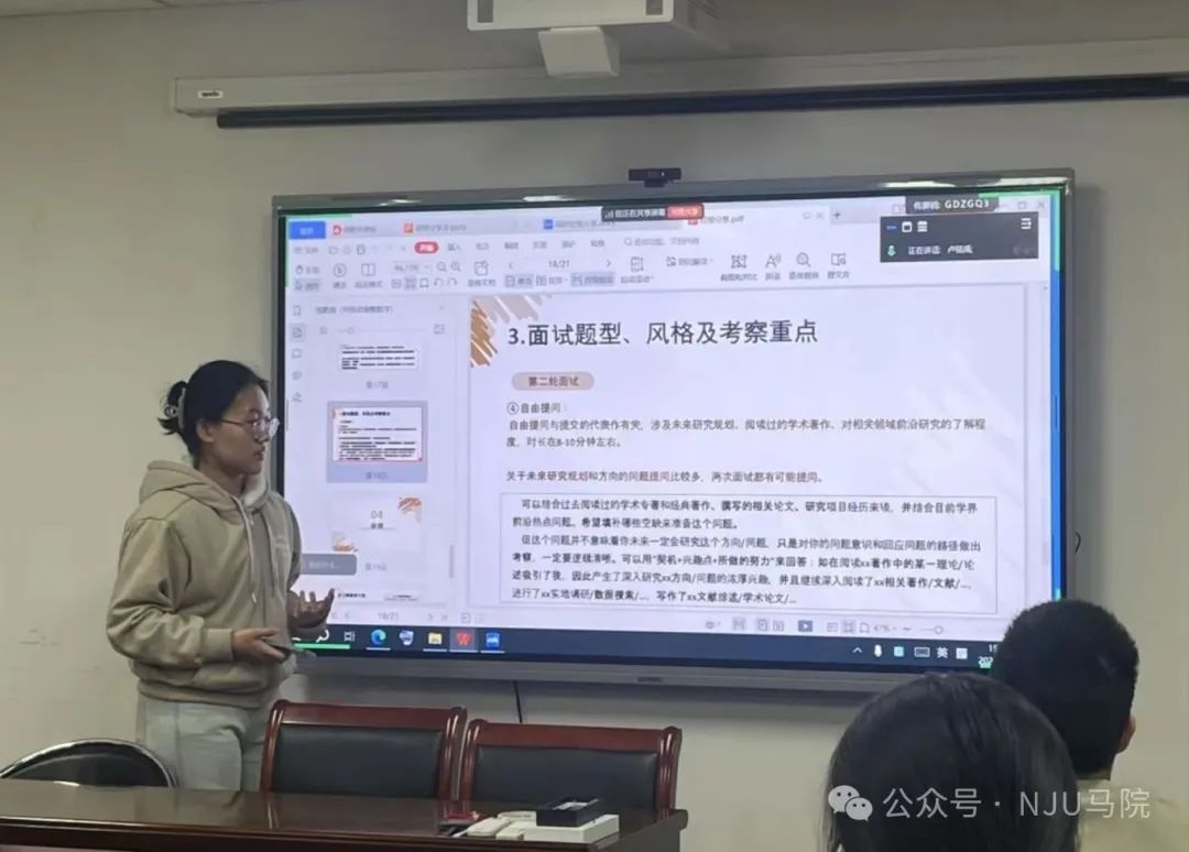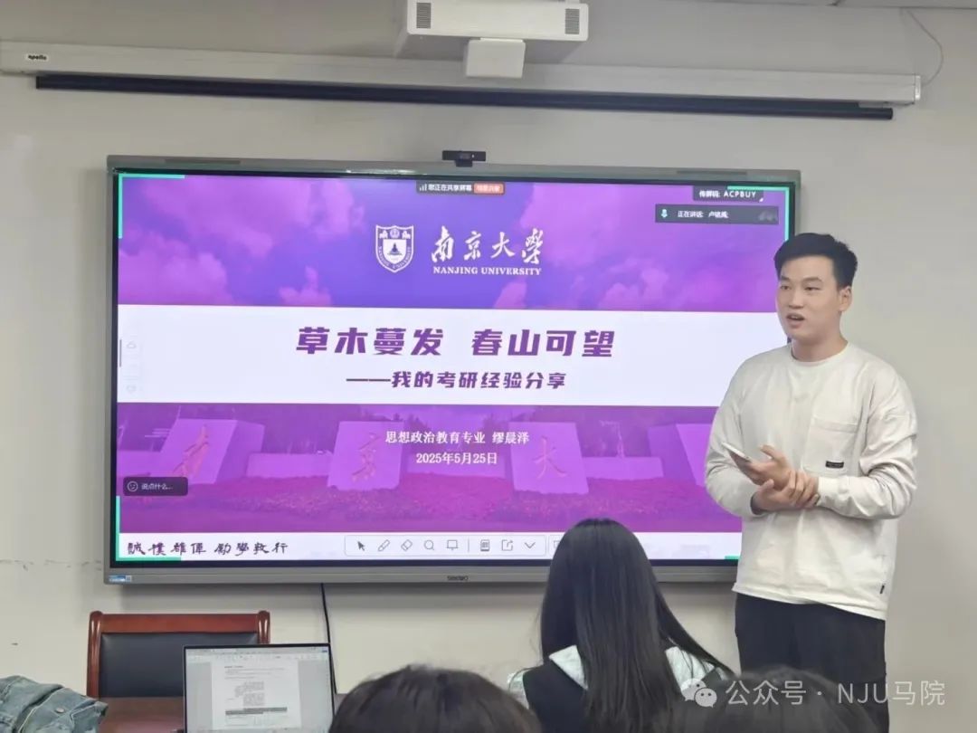5月25日,考研经验分享会于仙林校区圣达楼211教室举办,夏雨欣、缪晨泽、施凯和李志颖四位学长学姐分享了自身考研经验。夏雨欣学姐从个人考研时间线切入,详解国外马克思主义研究专业考情,分享“多积累、答题思路明晰”的应考心法。缪晨泽与施凯两位学长基于工作后再考研的独特经验,传授精准规划复习节奏、高效利用碎片时间的实用技巧。李志颖学姐则着重强调“自主构建知识库与强化输出能力”的重要性。互动环节围绕专著阅读、考研与求职平衡等问题展开讨论,为同学们拨开备考迷雾。