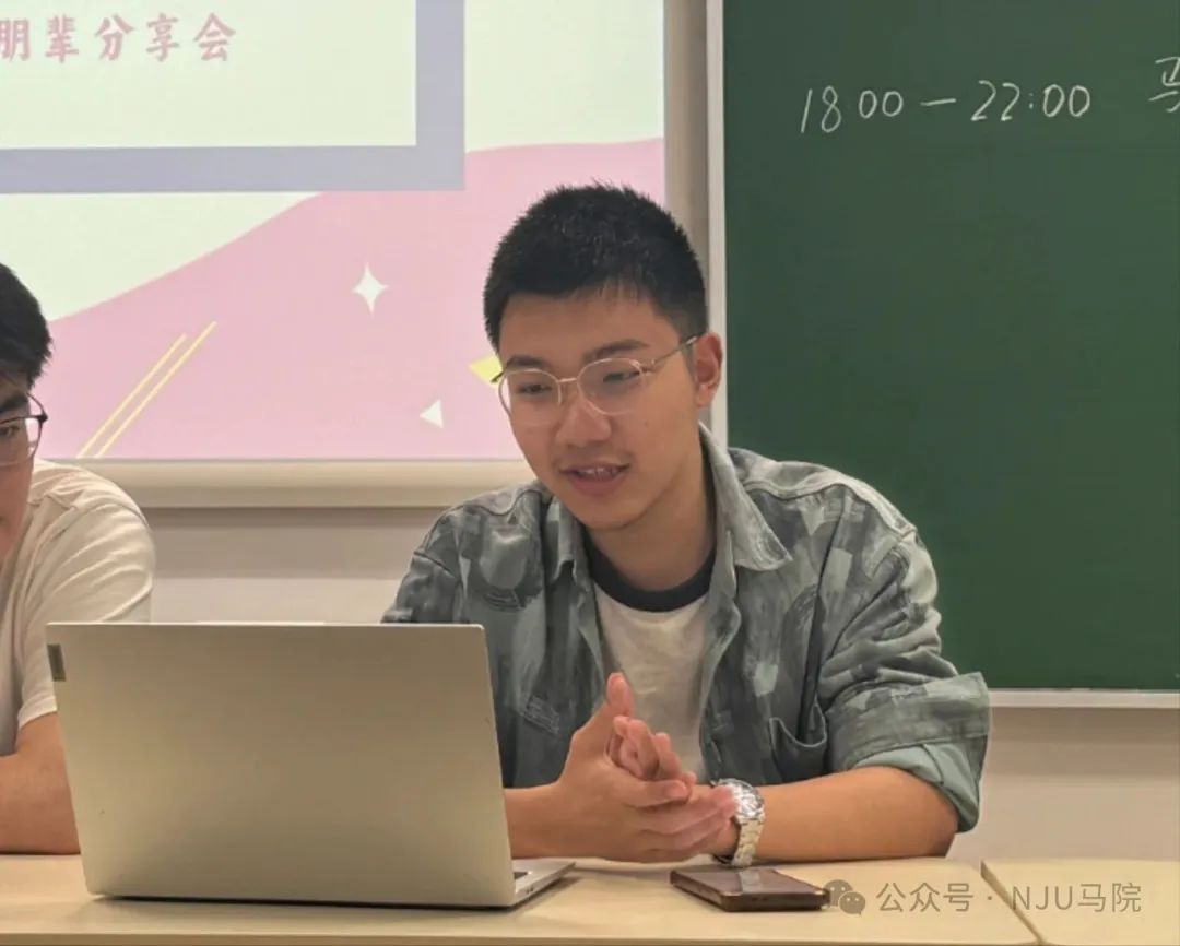 5月9日,鼓楼新教503教室内,本科生辅导员王泽森老师卢铭禹、徐浩峰、董文璐、李茂溪四位学长学姐与24级马克思主义理论专业班同学进行朋辈交流。王泽森老师与学长学姐们逐一回答前期向同学们收集的关于学业规划、论文写作、社会实践的疑问。互动环节中,同学们围绕时间规划、学业发展、就业方向踊跃提问,学长学姐结合亲身经历给予建议,为学弟学妹们提供宝贵的经验借鉴与未来规划的启示。