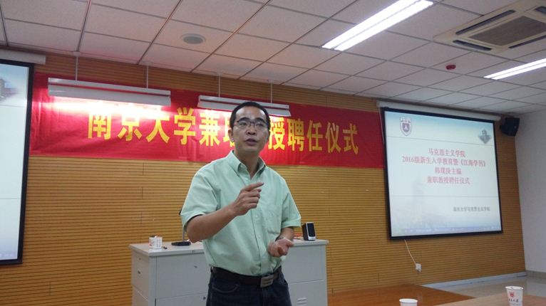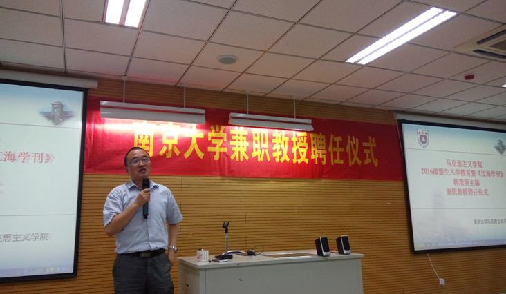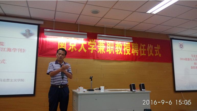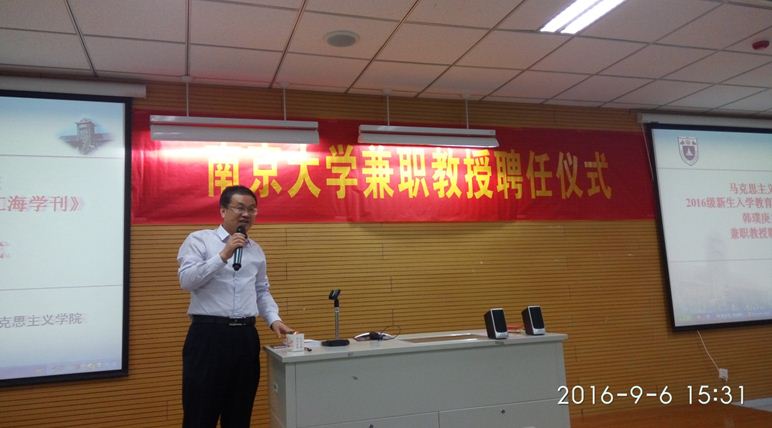 2016级新生入学教育活动暨《江海学刊》韩璞庚主编兼职教授聘任仪式于仙林校区圣达楼102教室举行。可达鸭