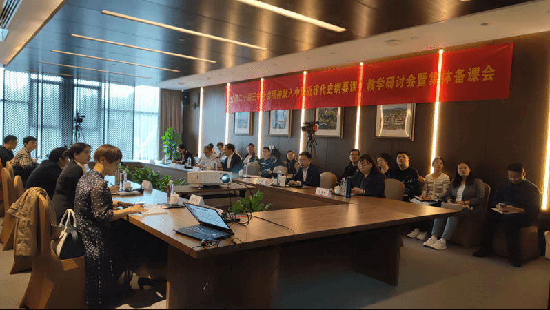 中共党史党建研究院问道大讲堂第十二期暨“党的二十届三中全会精神融入中国近现代史纲要课”教学研讨会暨集体备课会圆满落下帷幕。本次活动采取线上线下相结合的形式,在全国高校思政课“手拉手”集体备课中心云上大练兵平台全程直播。江苏省高校思政课教指委“中国近现代史纲要”分教指委委员、省内部分高校思政课教师代表现场参会,全省“中国近现代史纲要”课教师线上参会。